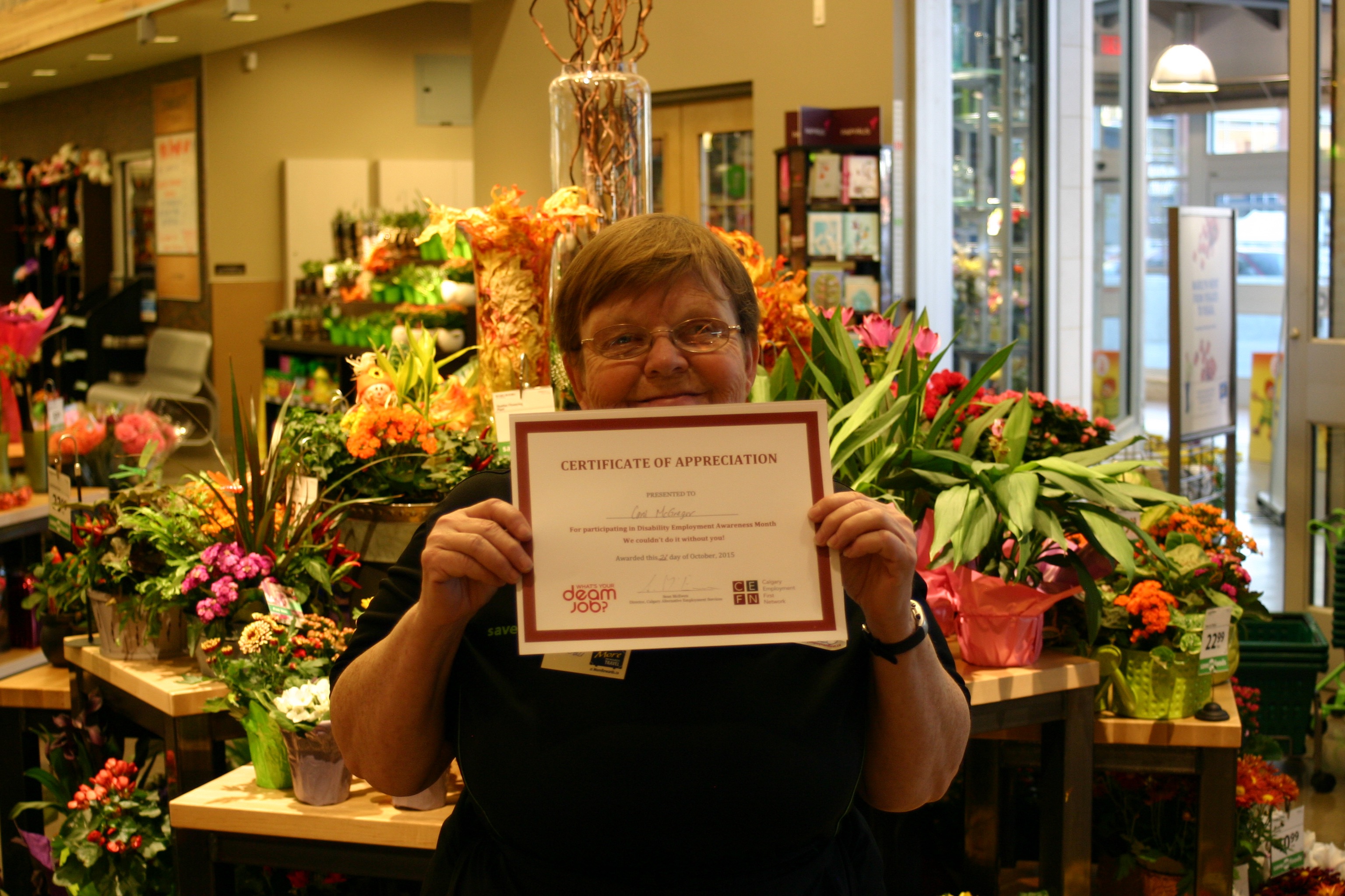 With confidence and grace Carol approached the managers and quickly won their vote. Honest and proud in her ability to successfully get the job done, Carol managed to find a position which matched the store’s need and Carol’s expertise. Carol enjoys her work because she feels proud to work with leaders in inclusive employment, while pursuing her career passions. After only a few months on the job everyone knows Carol and enjoys her presence because of the exceptional warmth, positive attitude and wicked sense of humor that Carol brings to work each day.
